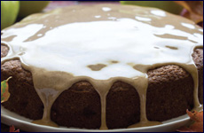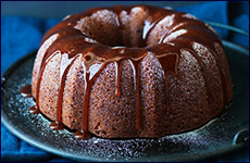 Dust cake lightly with powdered sugar. Drizzle caramel sauce over cake, allowing it to drip down sides and into grooves and crevices. Serve remaining sauce alongside.