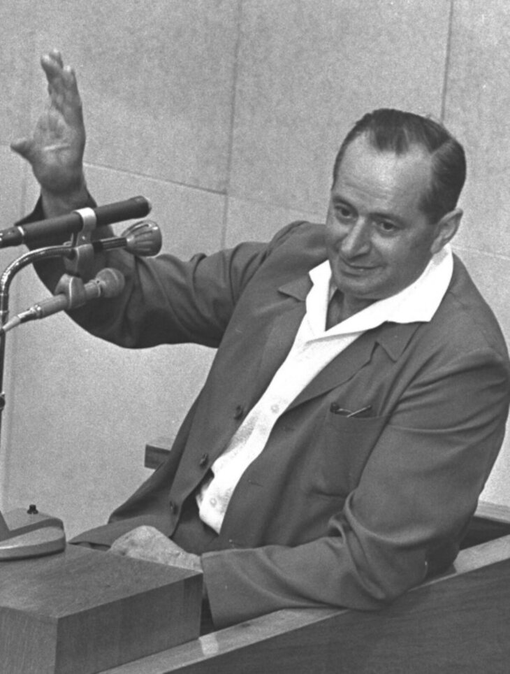 Michael Podchlebnik testifying in Jerusalem at the Eichmann trial