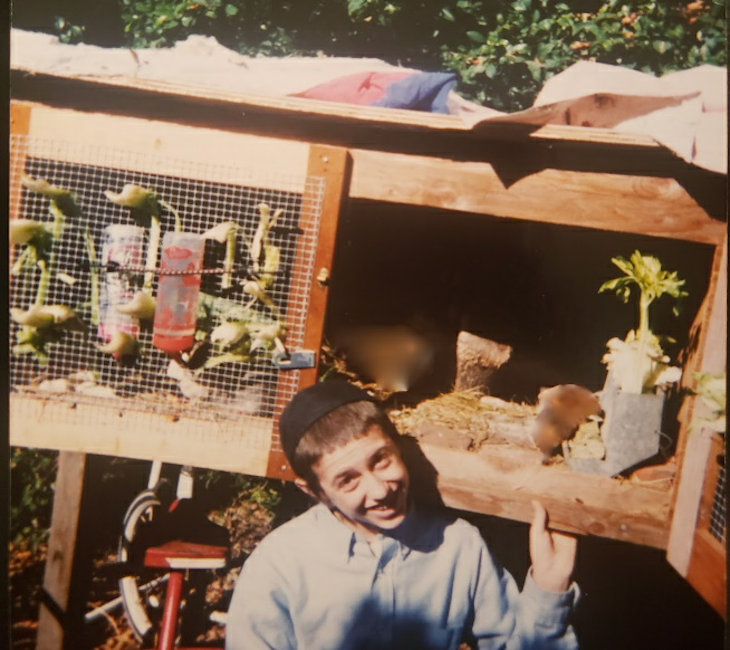 But the guinea pigs were proficient at producing exorbitant amounts of excrement and they had begun to breed. As soon as I began to smell like them, I was told I needed to figure out an “outdoor solution.” Our neighbor, a kind and skilled architect, fashioned an outdoor guinea pig hutch for me, adjacent to the flower garden in front of the mikvah. I presume my parents agreed to it for easy access to the self-perpetuating, 100% organic, guinea-pig fertilizer.
