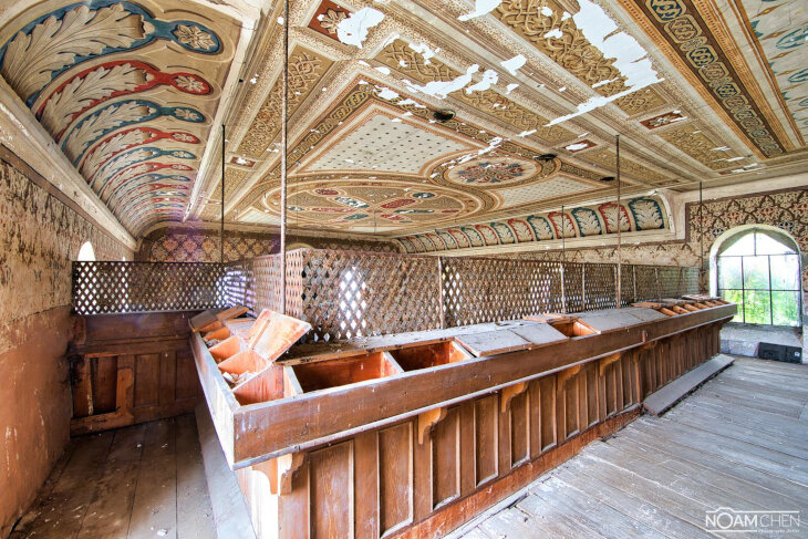 The ceiling’s stunning features are now falling apart, Košice’s Orthodox Synagogue.