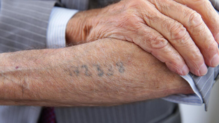In Auschwitz, he the number 172338 was tattooed on his arm. He learned that his parents had been victims of the Auschwitz gas chambers and crematoriums. Eddie slept naked in a narrow row of ten men when it was eight degrees below zero Fahrenheit. He marched for an hour and a half to work, sometimes clearing debris from a bombed-out ammunition depot or jackhammering coal on a 12-hour shift.
