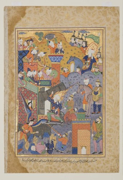 Ali fighting at the gates of Khaybar. Islamic artwork, circa 1610. (Khalili Collections / CC-BY-SA 3.0 IGO)