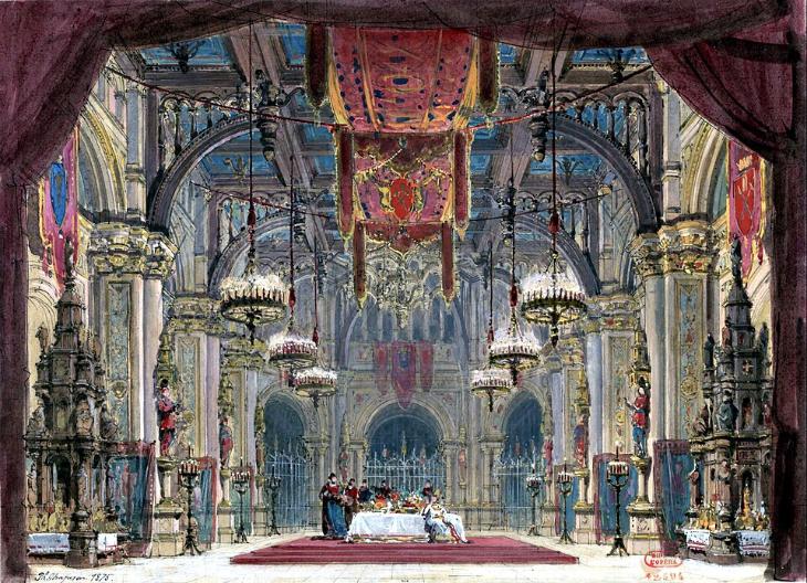 Le Prophète : sketch of the opera set for the second scene of the fifth act (1875) by Philippe Chaperon (1823-1906) (WikiMedia Commons)
