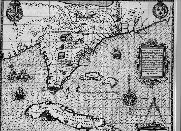 A 1591 map of Florida by Jacques le Moyne de Morgues.