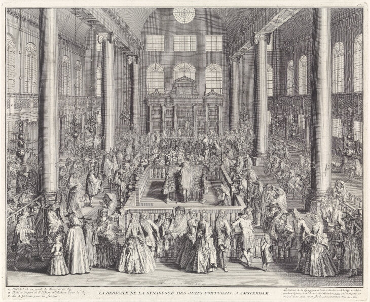 The dedication of the Portuguese Synagogue in Amsterdam, 1675. Bernard Picart. Rijksmuseum, CC0, via Wikimedia Commons