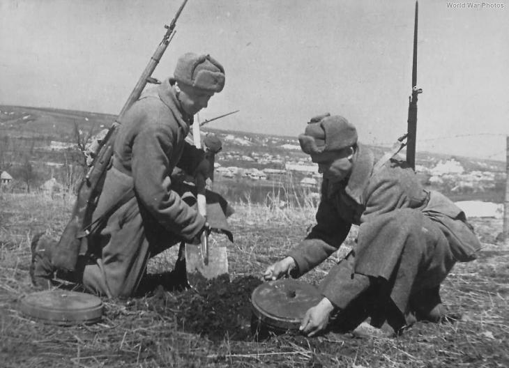 Soviet sappers with anti-tank mine