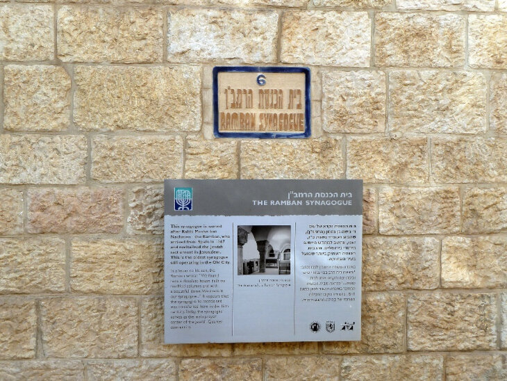 The inscription and sign on today's Ramban Synagogue in Jerusalem. Source: Utilisateur:Djampa - User:Djampa, CC BY-SA 4.0, via Wikimedia Commons