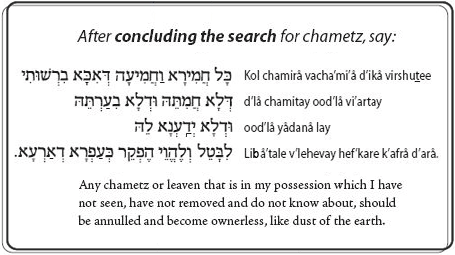 It is crucial for a person to understand what he is saying and recite it in a familiar language. If he does not understand the Aramaic words, he should say the following declaration in English: "All chametz and leaven that is in my possession that I have not seen, that I have not destroyed, and that I do not know about, shall be null and ownerless like the dust of the earth." (Some have the custom to say the nullification three times.)