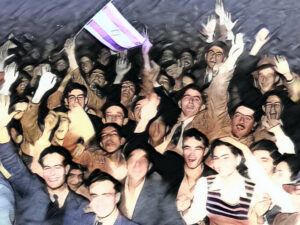 Pandemonium broke out and the entire Jewish population was seized with joy. For that moment, all bitterness and remorse over past injustice disappeared. In Tel Aviv, in Jerusalem, in every town of Palestine, Jews poured into the streets cheering wildly. People of all ages spun around in euphoria, dancing the hora. (From Living History: The Memoirs of a Great Israeli Freedom-Fighter, Soldier, Diplomat and Statesman by Chaim Herzog. Weidenfeld Nicolson, London: 1997.)