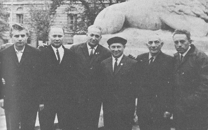 Alexander Pechersky (third from left) and other former Sobibor prisoners circa 1970. (Public domain)