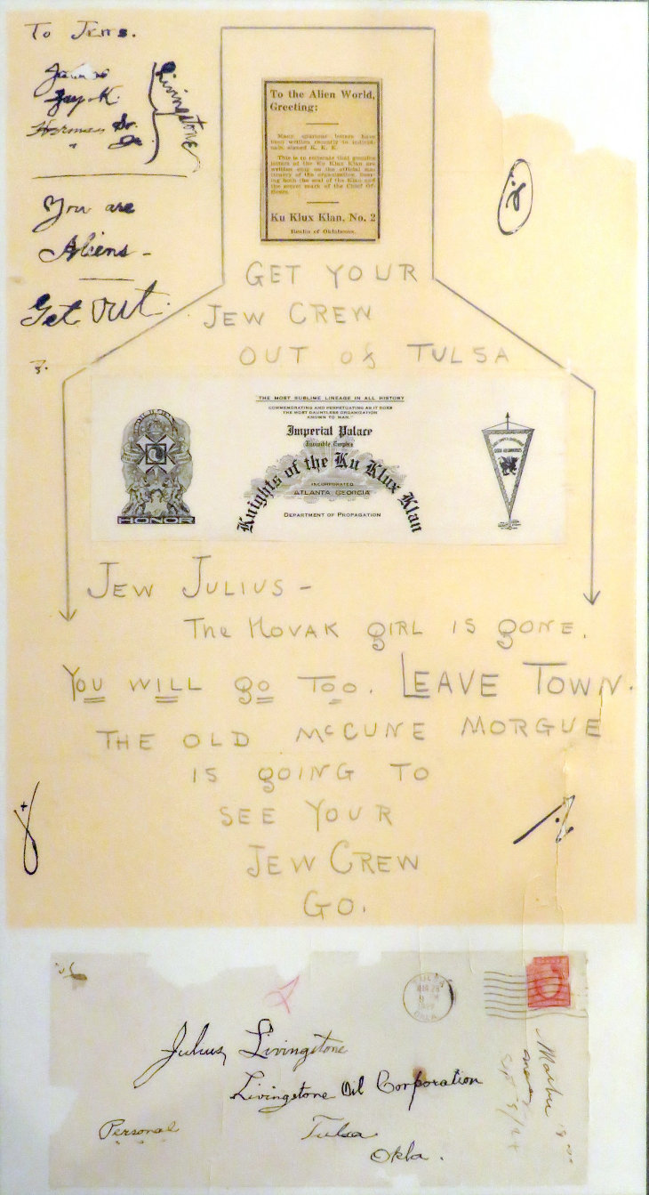 1922 Letter to Julius Livingston telling him to get his “Jew Crew out of Tulsa” (SMMJA Livingston Archives)