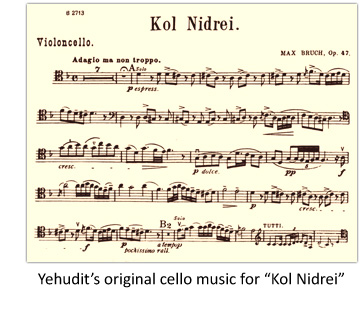 Her cello teacher gave her the sheet music for "Kol Nidrei," the solemn prayer that begins Yom Kippur services. "Even before I played it, I sensed something special," Yehudit says. "I stared at the music and it was like the notes were popping off the page. When I played it, every hair on my body stood up straight. I couldn't explain it and I needed to find out its origins."