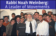 According to the calendar, he died one week before his 79th birthday. But all who knew him know he died a very young and vigorous man. He had accomplished so much. His brother Rav Yaakov Weinberg zt"l, the Rosh Yeshiva of Ner Yisroel, once said that his brother Rav Noach had done more for the Jewish people than anyone else in this generation. He built an international organization that touches the lives of one million people a year. Tens of thousands of people are today Torah observant because of his ground-breaking efforts, but if you met him, you could make the mistake of thinking he was just starting out. He was so hungry, so passionate, so frustrated not being able to do more. You never would have believed that this was a man who had so many accomplishments to his credit.
