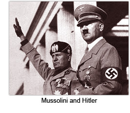 October 1936 – Hitler and Mussolini form the Rome-Berlin Axis. One month later, Germany and Japan sign a military pact.