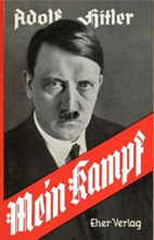 November 1923 – German citizens seek solution to runaway inflation; 35,000 join the Nazi Party. Hitler attempts to seize power in Munich, is arrested and tried for high treason and sentenced to five years in prison. There writes Mein Kampf ("My Struggle") articulating his campaign against his archenemy, the Jews. He is released after eight months.