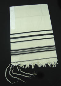 It is interesting that the series of stripes (usually black or blue) on just about every Tallit Gadol may have their origin as a reminder of the "strand of techelet" once worn as part of the Tzitzit.58