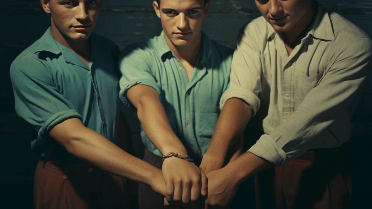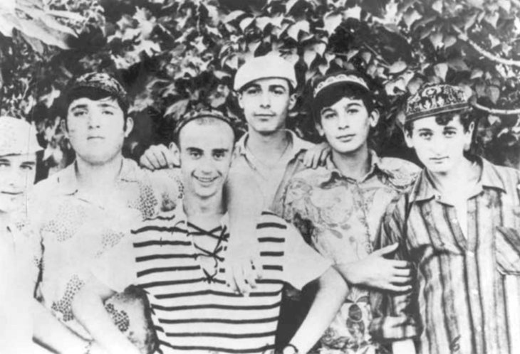 Students of the underground yeshiva in Samarkand: From left to right: Avrohom Zerach Notik, Tanchum Boroshansky, Yosef Yitzchak Zaltzman, Benzion Goldschmidt, Shmuel Notik