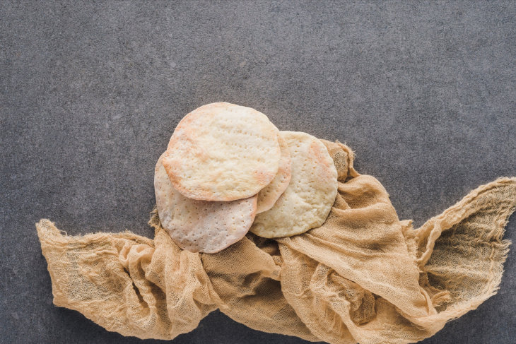 It is said that Yemeni matzah is the closest thing to what our ancestors ate during the exodus from Egypt, and its simplicity seems to support this assertion. Yemeni matzah is traditionally made with flour, water, and nothing else but the work of its baker. Yemeni matzah production, like in Ethiopia, also focuses on the speed and efficiency of the process, and thinning the ingredients down to two is certainly a facet of this. You can find soft matzah available fresh or in the freezer around Israel and other cities or online in the US here.