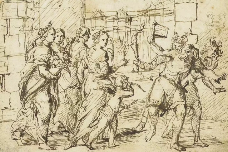 In Greek times, Cupid was known as Eros, the god of sex and desire, and was often described as the son of Aphrodite, the goddess of love. Depicted as a handsome young man, Eros carried a bow and arrow with him. Whomever he shot, whether at a god or a mortal, it was said, would fall in love. The ancient Greek poet Euripides captured the terror that Eros could bring about: “I pray that love (Eros) may never come to me / With murderous intent, in rhythms measureless and wild” (quoted in Hippolytus by Euripides). Romans included Eros in their pantheon as Cupid, generally depicted even younger, like a child, but no less sinister. Wherever Cupid’s arrows landed, it was thought, love – no matter how unwelcome or inappropriate –would follow.