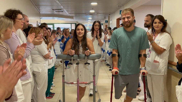 Ben and Gali leaving the hospital. (Photo: Spokesman, Hillel Yaffe Medical Center)
