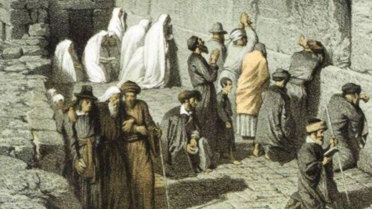 Jews Praying at Wailing Wall in Jerusalem, by Johann Martin Bernatz (Ottoman Archives, 1868)